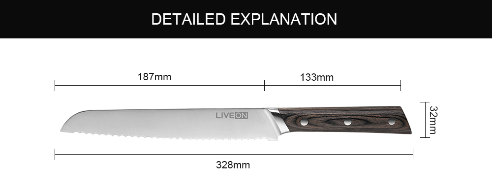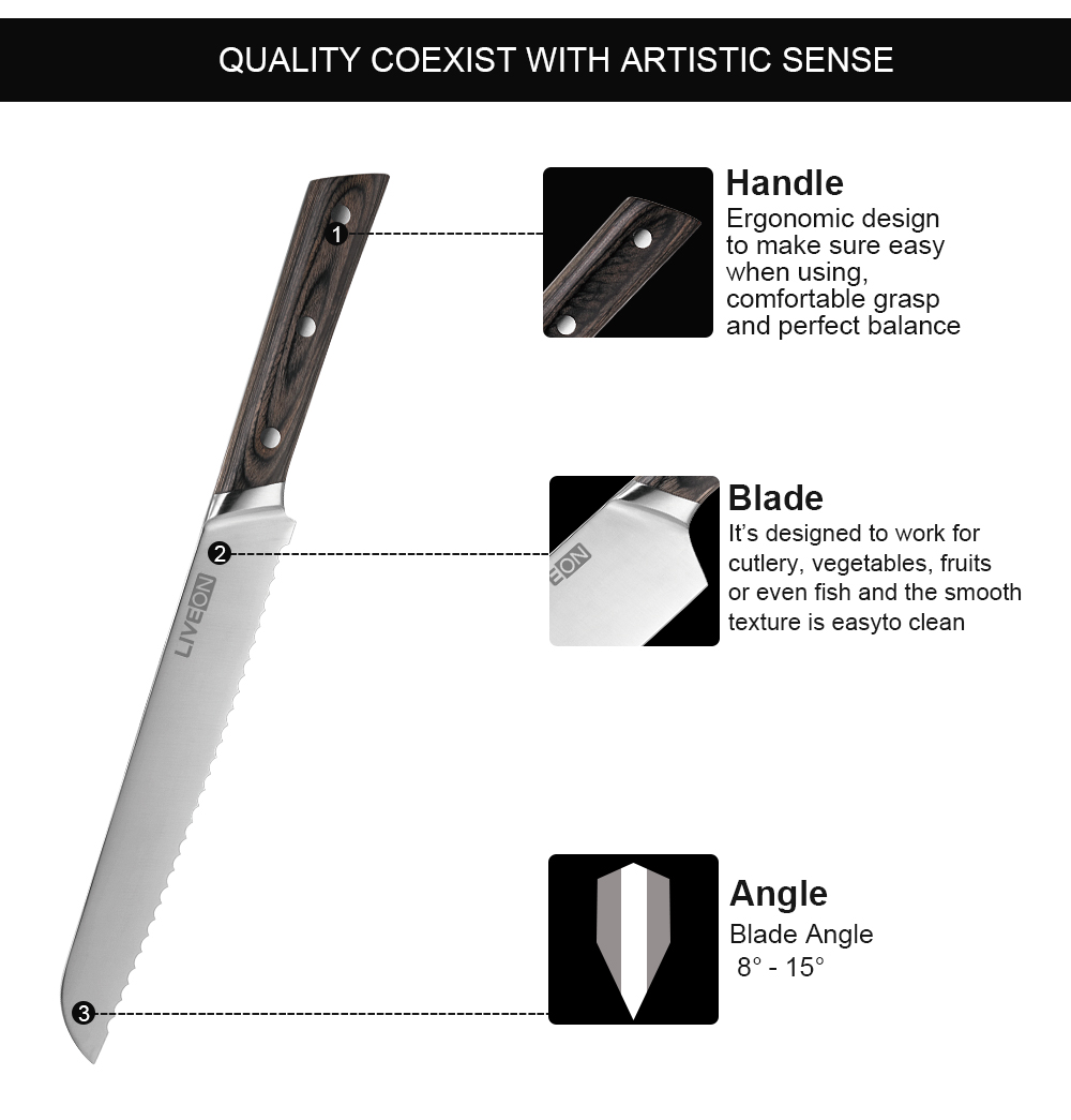 • Stainless steel blade with high carbon: The professional Bread Knife is manufactured from high-quality stainless steel that maintains its functionality for a long time. And to boost its sturdiness, the steel contains 0.6%-0.75% carbon, making it two times as hard as other knives in its class as they contain just 0.3% carbon.