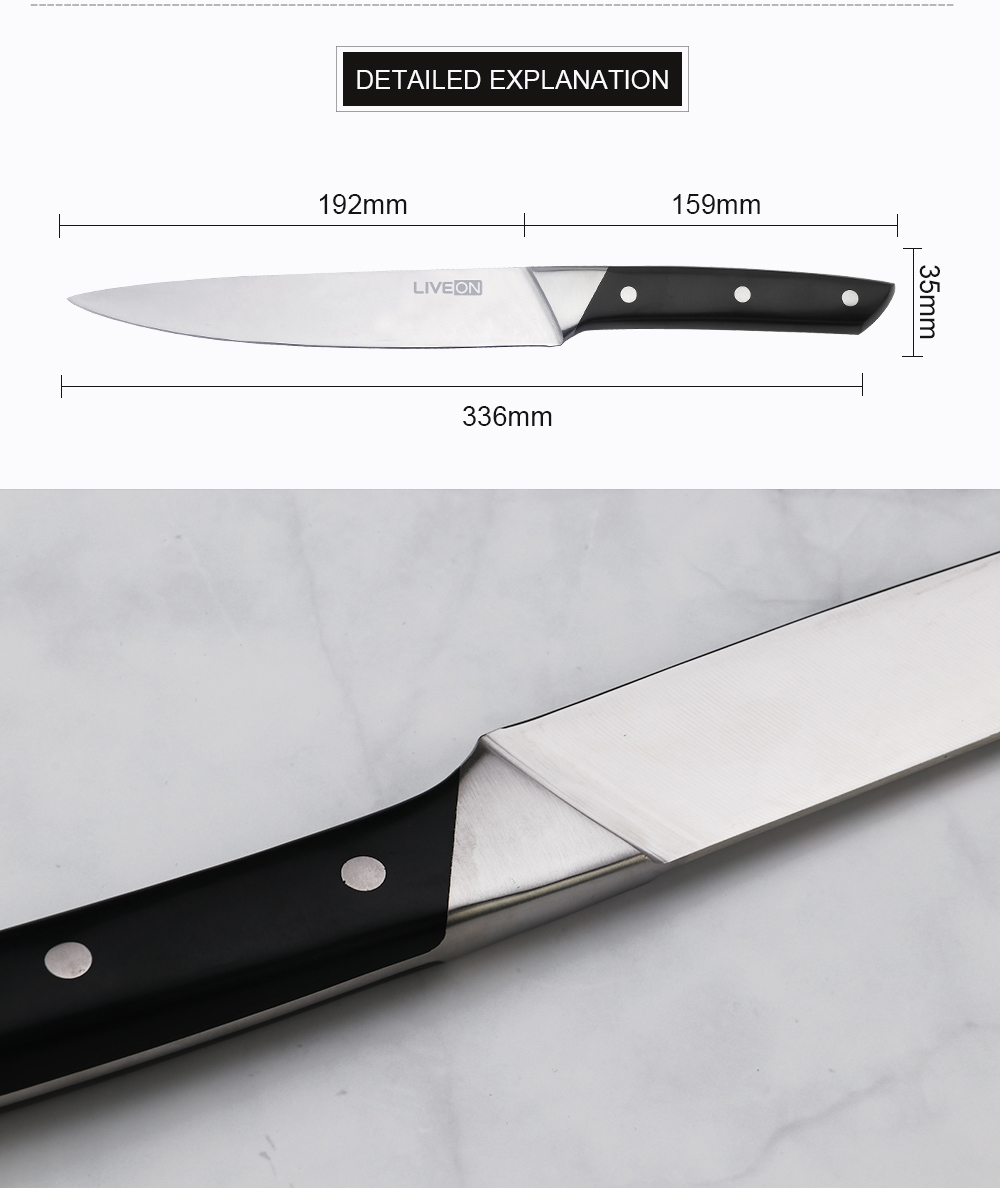 Classic Stainless Steel 8 inches slicing knife is made of 100% Stainless Steel which is rust and tarnish resistant