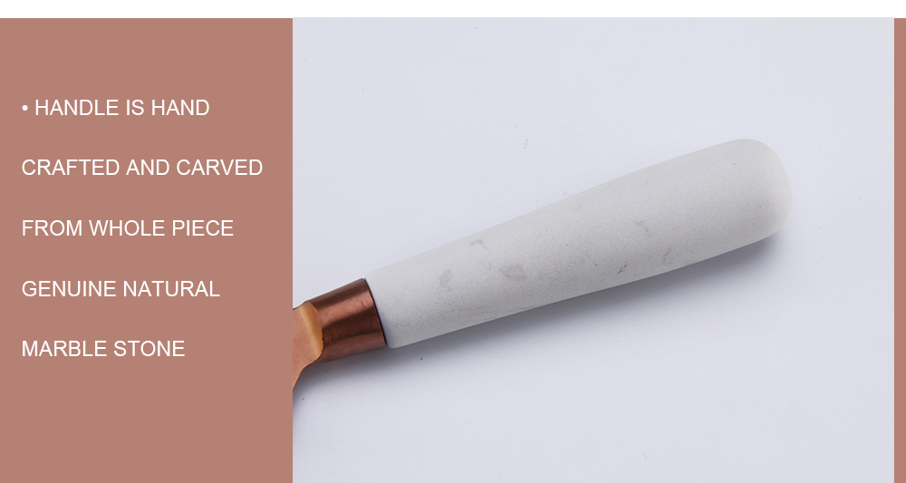 Visually, white marble handle of our cheese knife is smooth and pretty.